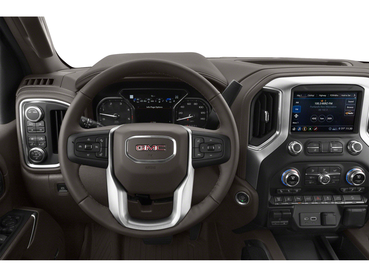 Preferred Equipment Group 5SA: HD Rear Vision Camera; LED Cargo Area Lighting; Remote Vehicle Starter System; 2 USB Ports (first Row); Power Sliding Rear Window with Defogger; Safety Alert Seat; Electric Rear-Window Defogger; Wireless Phone Projection; Floor-Mounted Center Console; Signature Denali Grille with High Gloss Black Mesh; Unauthorized Entry Theft-Deterrent System; Bed View Camera with Two Trailer Camera Provisions; Compass Located in Instrument Cluster; HD Surround Vision with 2 Trailer View Camera Provisions; Electrical Lock Control Steering Column; Driver Alert Package II; 120-Volt Instrument Panel Power Outlet; LED Smoked Amber Roof Marker Lamps; 17" Forged Polished Aluminum Wheels; Heated Driver and Front Outboard Passenger Seats; Front Chrome Recovery Hooks; Wireless Charging; Steering Wheel Audio Controls; GMC Connected Access Capable; Universal Home Re
