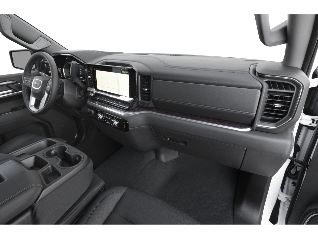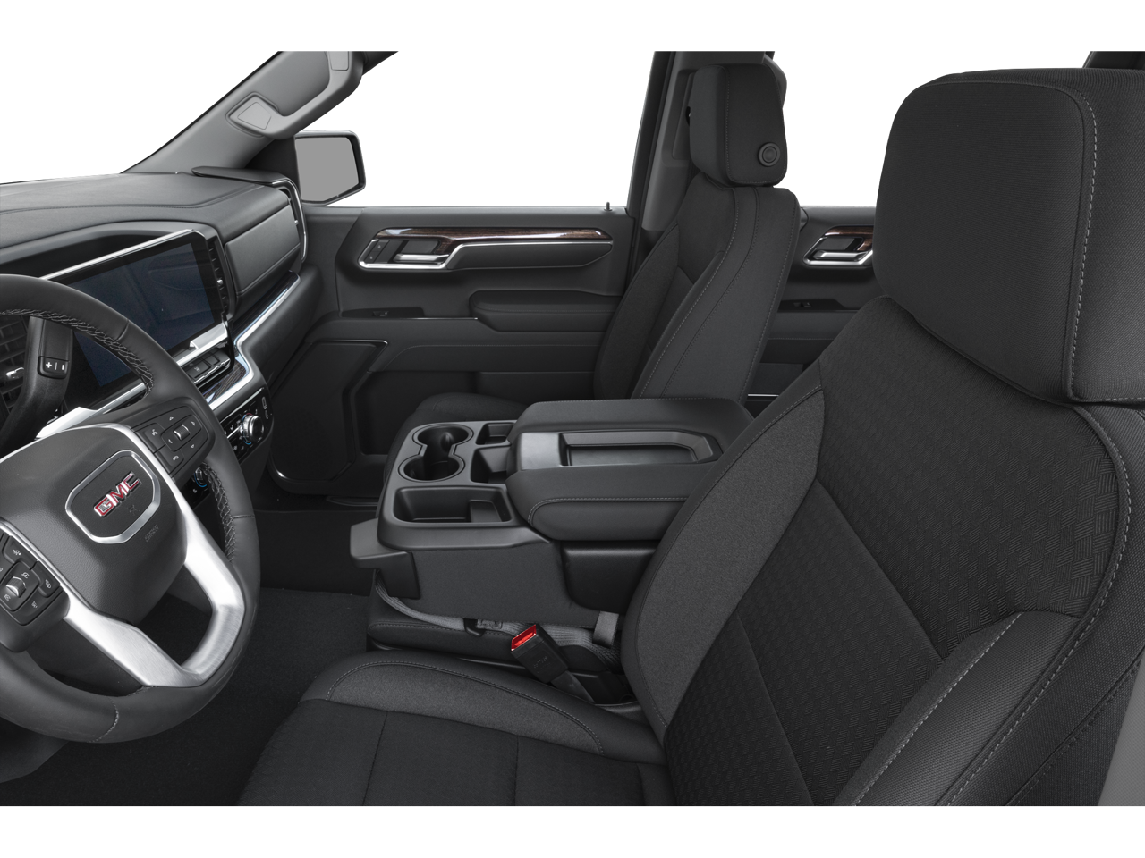 SLT Convenience Package: Ventilated Driver and Front Passenger Seats; Power Rake and Telescoping Steering Column; Premium Bose 7-Speaker Sound System; Floor-Mounted Center Console; Wireless Charging; Front Bucket Seats. Max Trailering Package. SLT Premium Plus Package. ProGrade Trailering System: In-Vehicle Trailering System App; Hitch View. Sierra Safety Plus Package: Rear Cross Traffic Braking; HD Surround Vision; Trailer Side Blind Zone Alert; Rear Pedestrian Detection; Ultrasonic Front and Rear Park Assist; Safety Alert Seat; Trailer Camera Provisions. Preferred Equipment Group 4SA: HD Rear Vision Camera; LED Cargo Area Lighting; Remote Vehicle Starter System; Electric Rear-Window Defogger; Theft Deterrent System (unauthorized Entry); Chrome Header and Chrome Grille Insert Bars; 170 Amp Alternator; Auxiliary External Transmission Oil Cooler; Front Rain-Sensing Wipers; GMC Pro Safety; Trailering Package; 120-Volt Interior Power Outlet; 2 Charge/data USB Ports; Steering Wheel Audio Controls; 2 type-C Charge-Only Rear USB Ports; Color-Keyed Carpeting Floor Covering; OnStar Services Capable; Power Front Passenger Windows with Express Up/down; Deep-Tinted Glass; 6-Speaker Audio System Feature; Power Rear Windows with Express Down; Integrated Trailer Brake Controller;